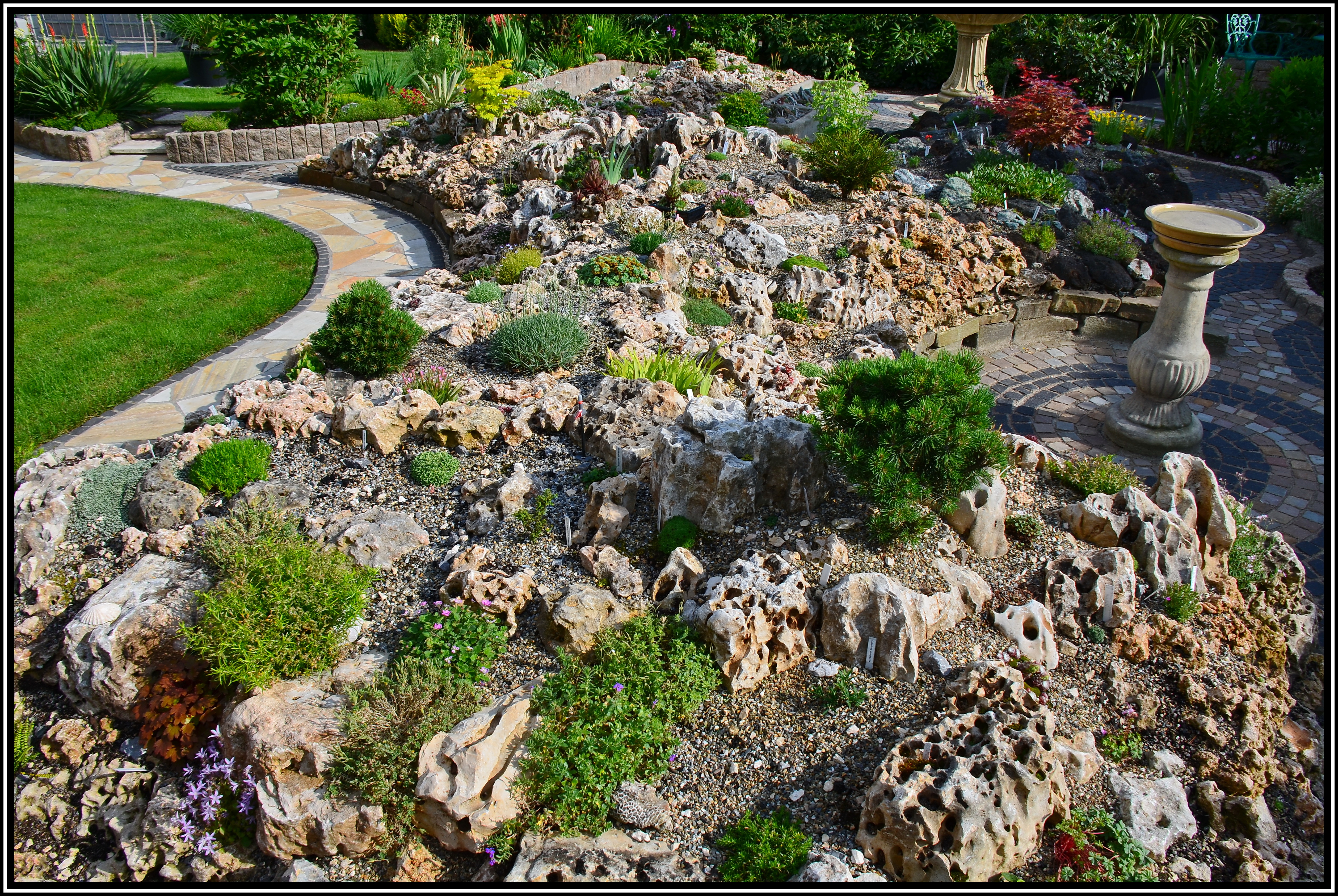 Auf einer Fläche von ca. 70 Quadratmetern haben wir im Sommer 2014 ein kleines Alpinum in Form eines Hügelbeetes angelegt.
