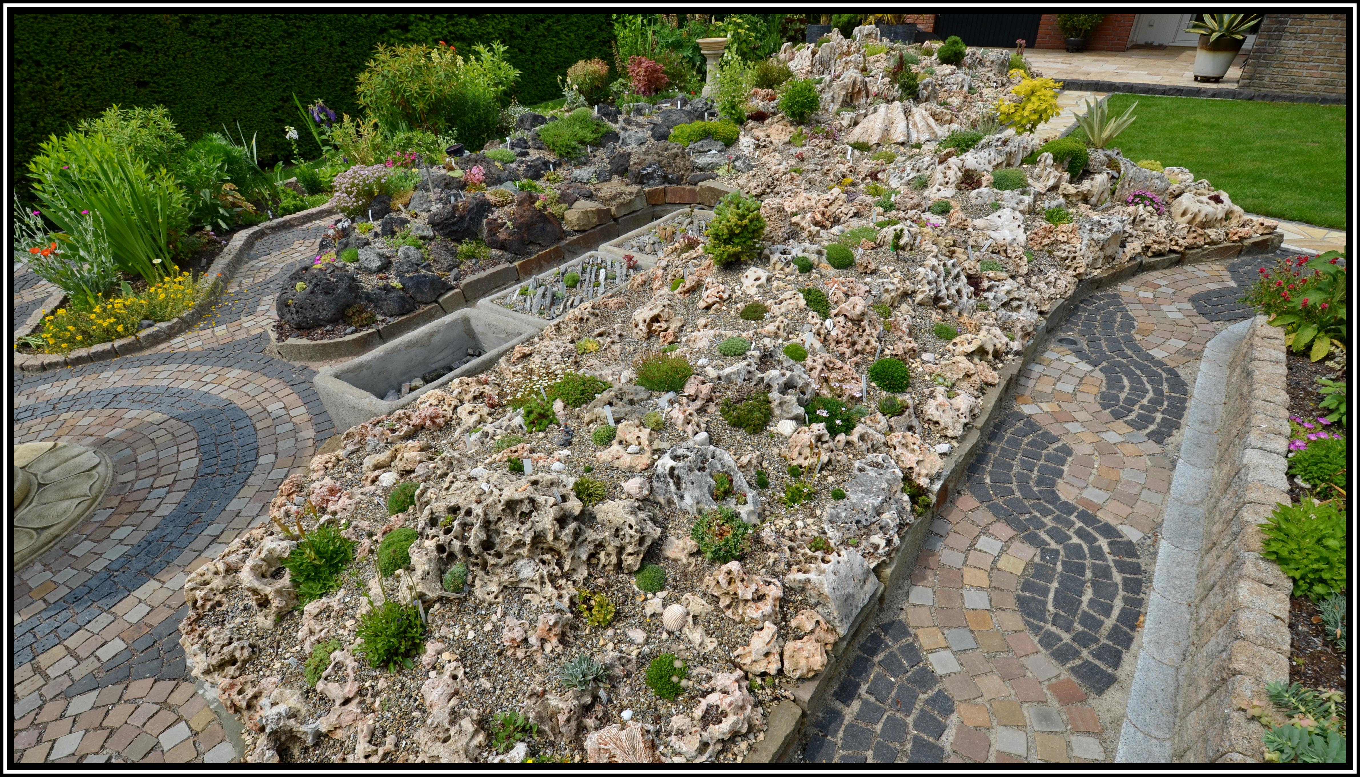 Das Alpinum (20/34) Dieser Bereich ist reserviert für die kleineren Pflänzchen im Kalkstein. Hungerblümchen, Mannschild oder kleine Polsternelken wachsen hier.