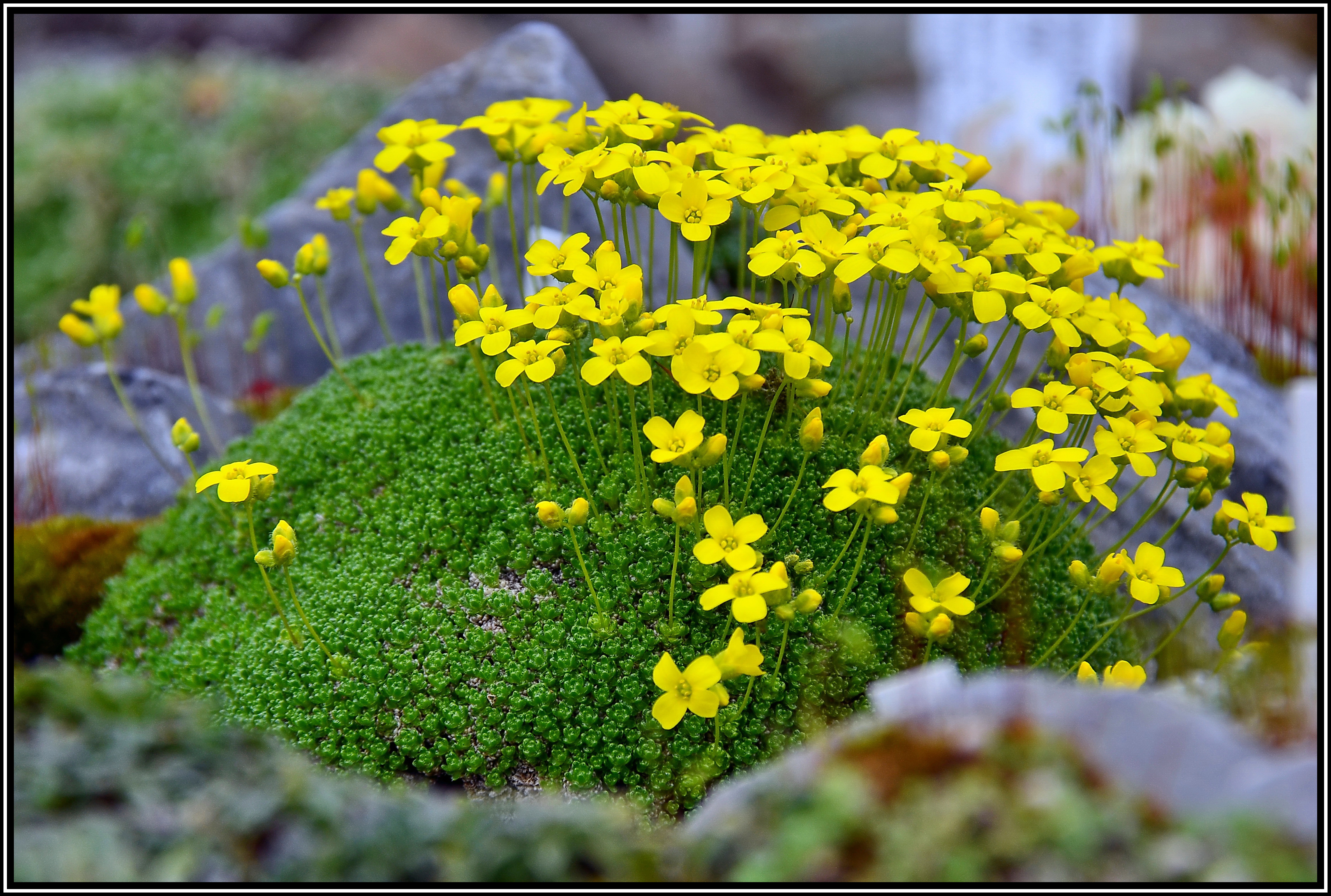 Die Tröge (19/23) Draba bryoides hat nunmehr eine schöne kugelige Form angenommen und seine Größe mehr als verdoppelt.