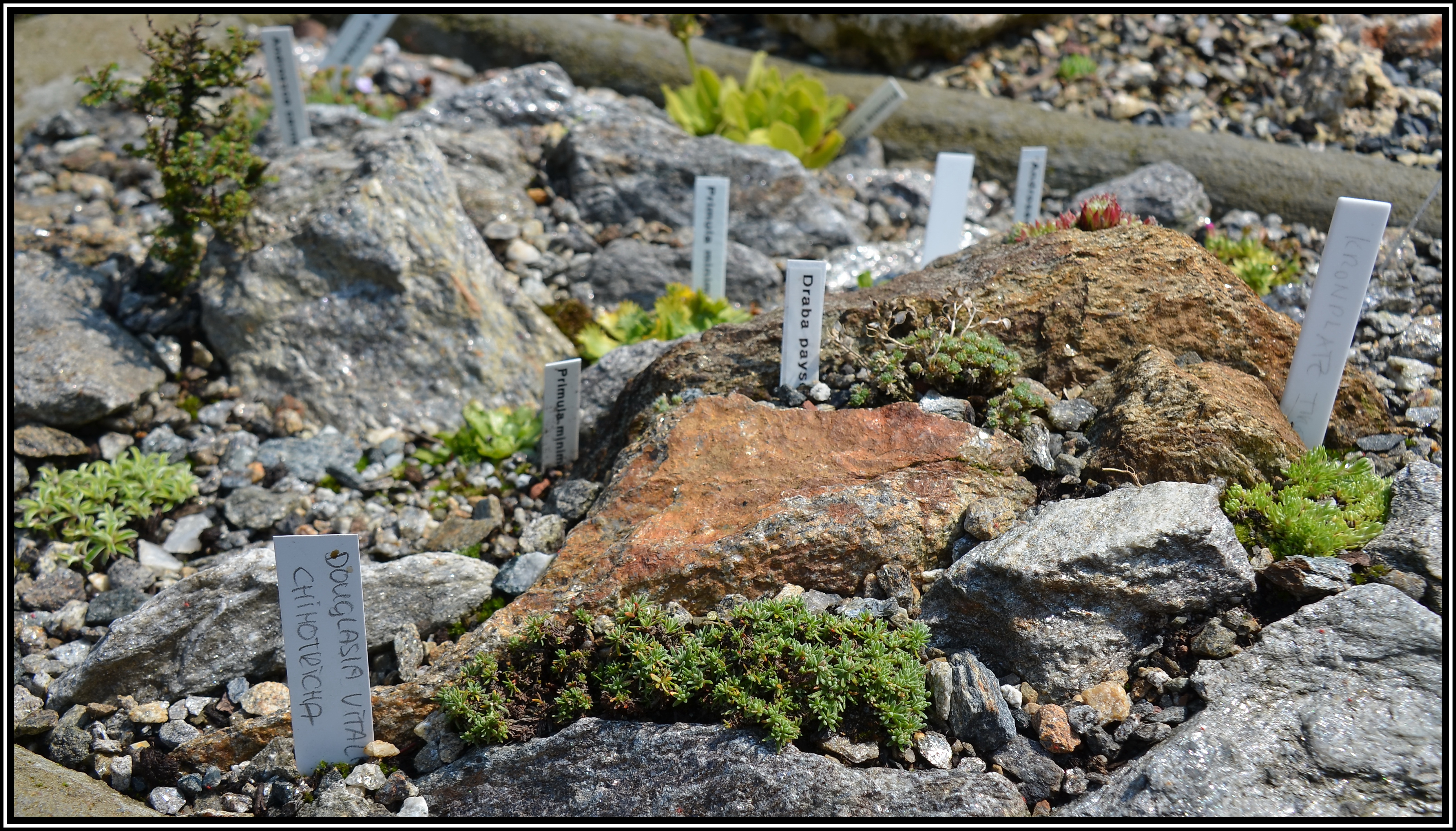 Die Tröge (2/23) Dieser Trog ist mit phyllitischem Glimmer-Granit befüllt und beherbergt Pflanzen, die eine eher saure Bodenreaktion bevorzugen.