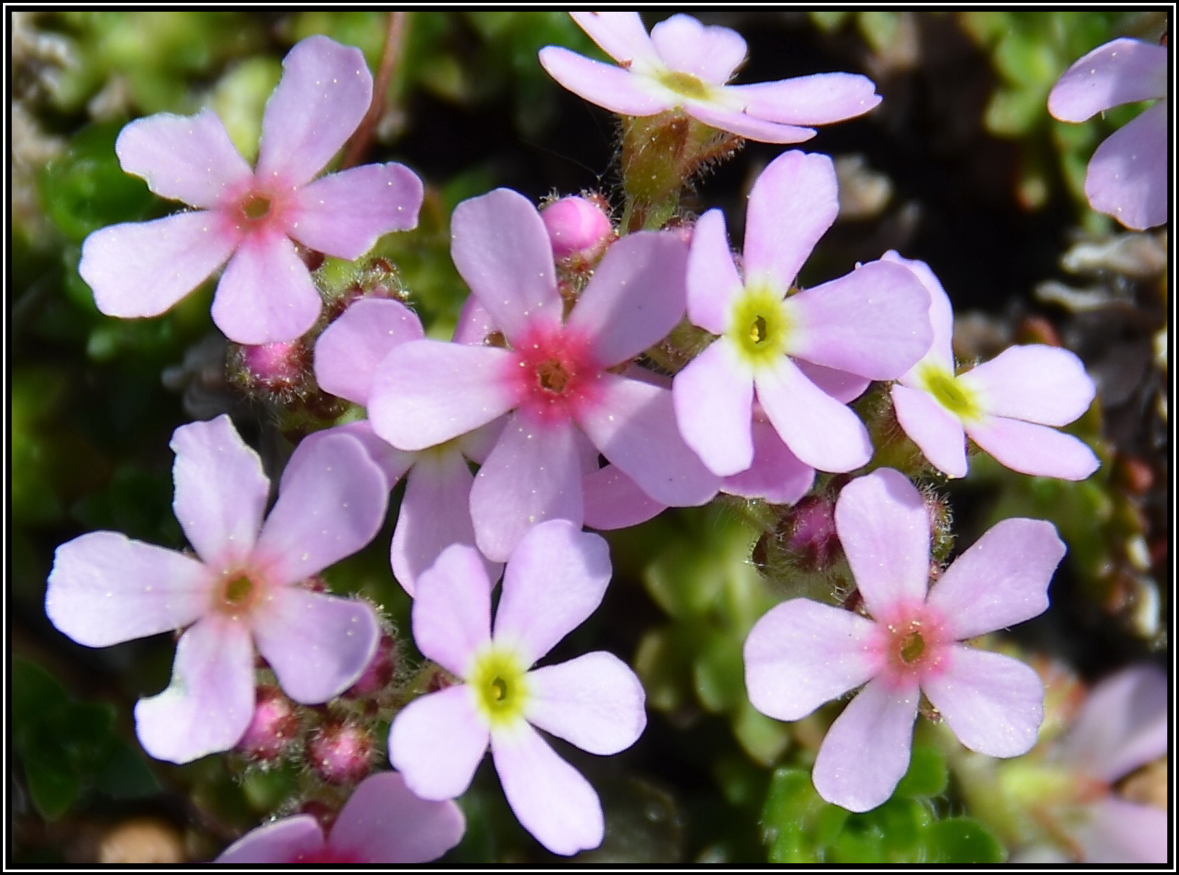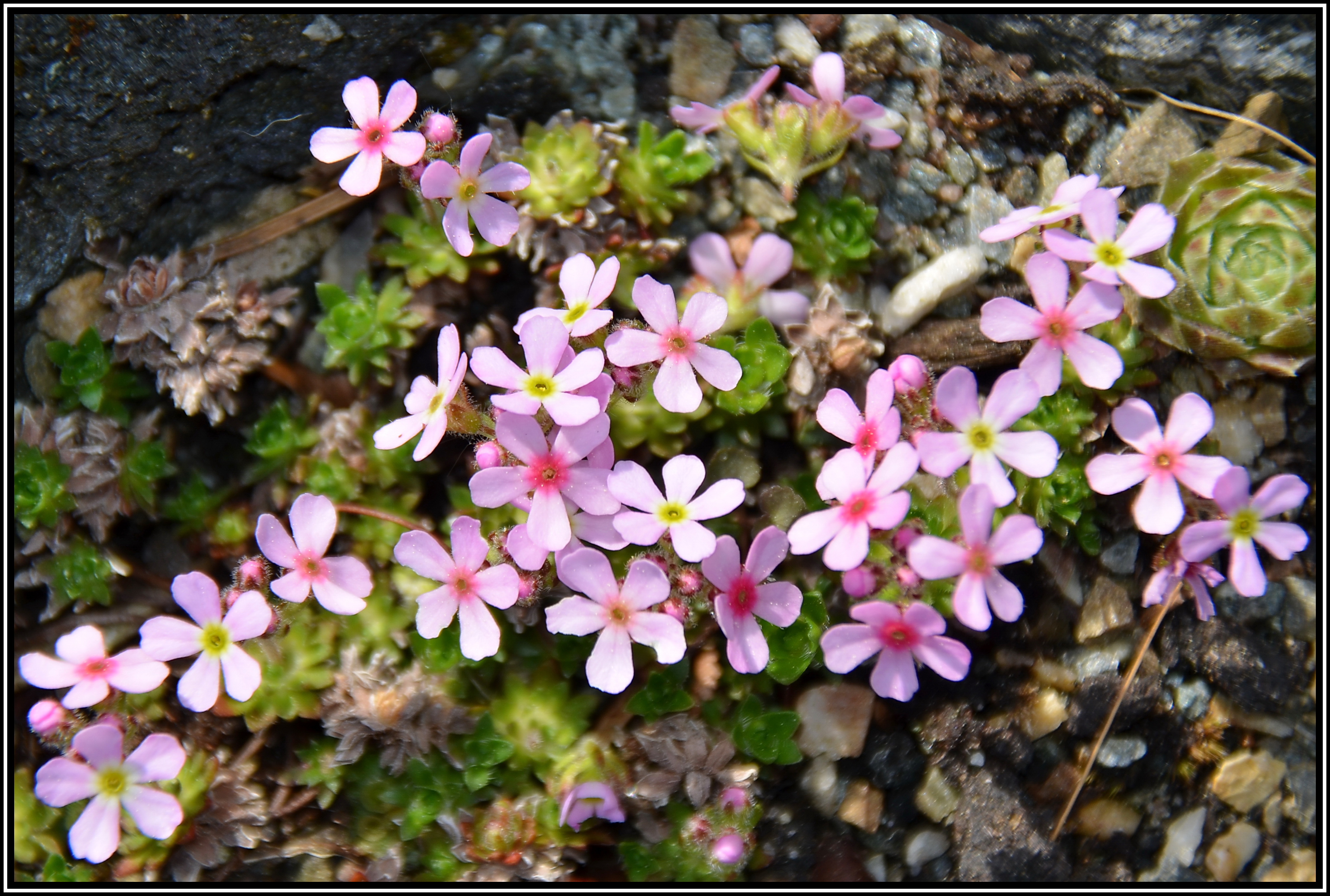 Dieses Mannschild aus dem Himalaya bildet lockere Matten mit kleinen Rosetten. Die Sorte Susan Joan hat größere Blüten mit schlankeren Blütenblättern als die Art.