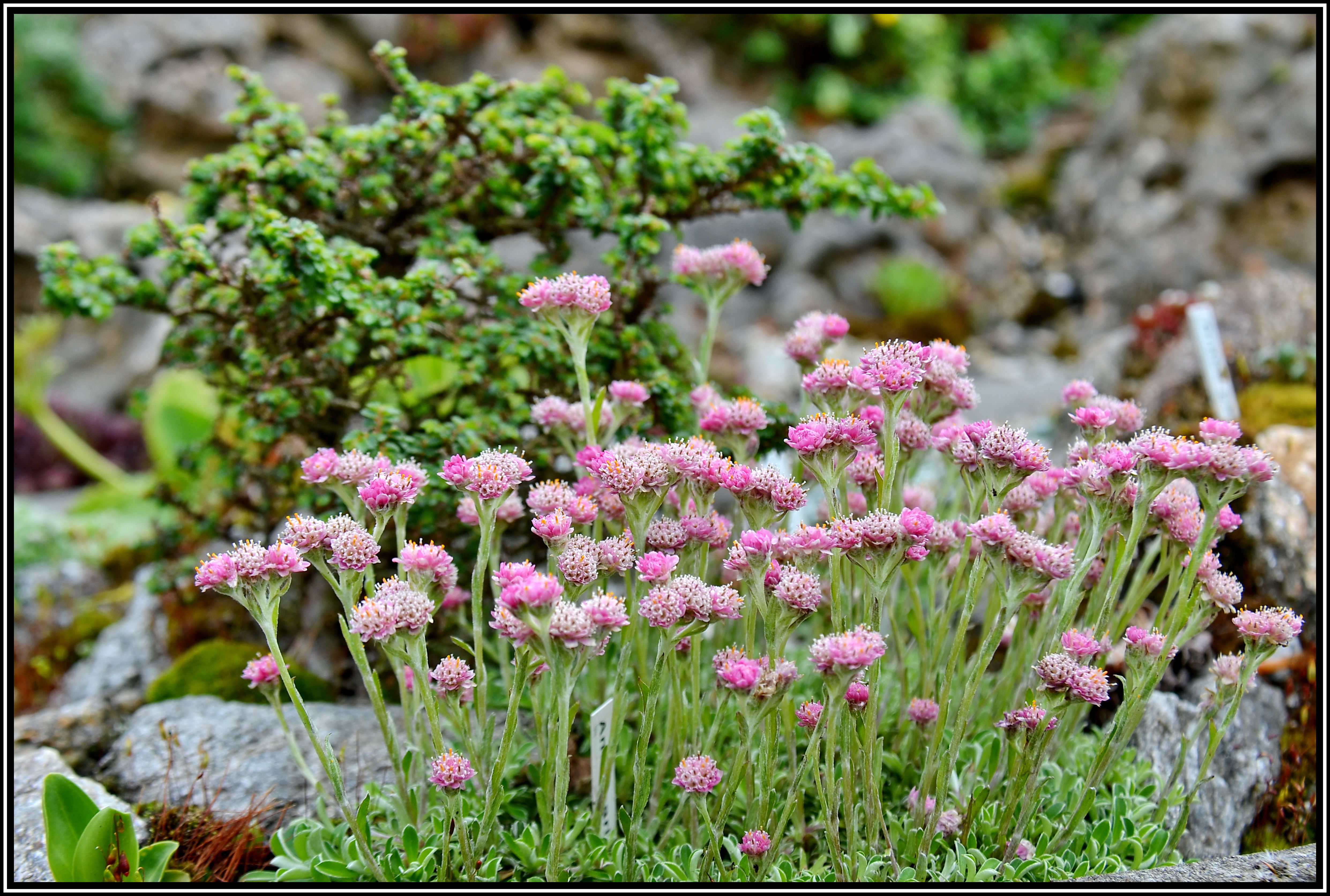 Eine zwergige Form des Katzenpfötchens, aus der umfangreichen Familie der Korbblütler. Eignet sich gut als Bodendecker auf neutralen bis kalkfreien Böden. Die Blütezeit dauert nur einige Tage. Die dunkelroten Blüten sind nicht sehr auffällig und verblassen mit der Zeit.