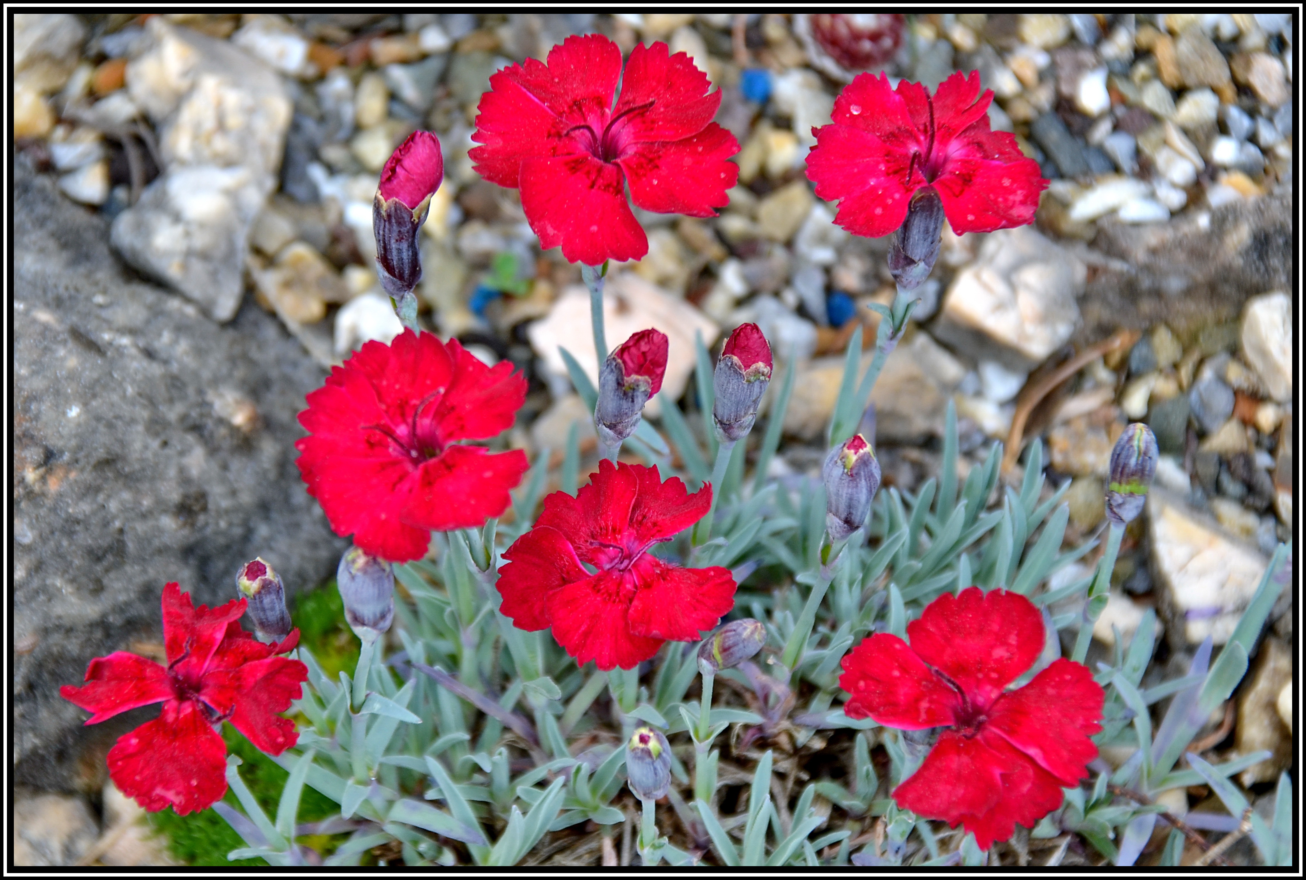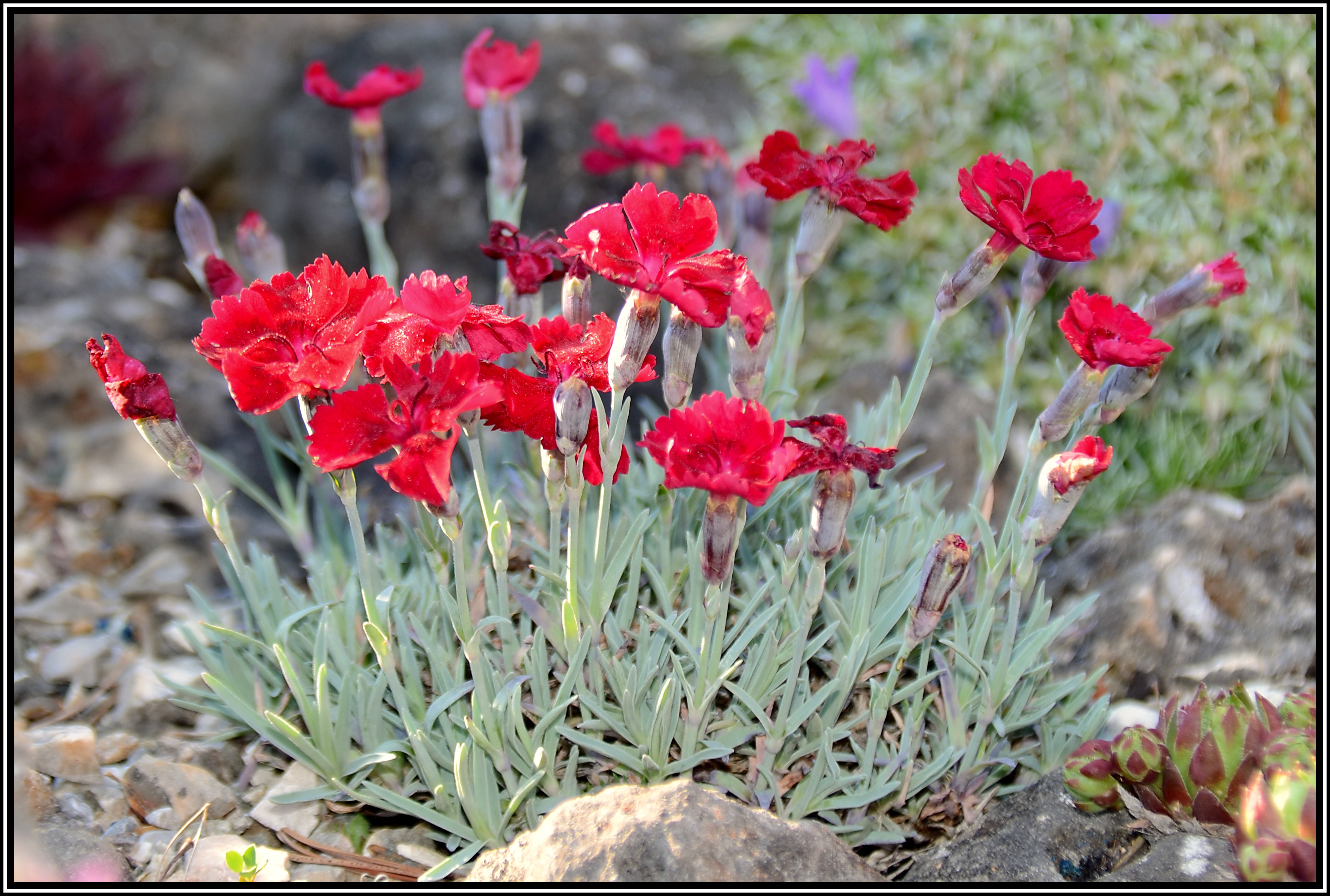 Pfingstnelken möchten gern auf magerem, durchlässigem Substrat wachsen, in voller Sonne. Es gibt unzählige Sorten, die alle sehr blühwillig sind. Sie kommen gut mit Trockenheit zurecht, winterhart und sind anspruchslos in der Kultur, deshalb sollten sie in keinem Steingarten fehlen.