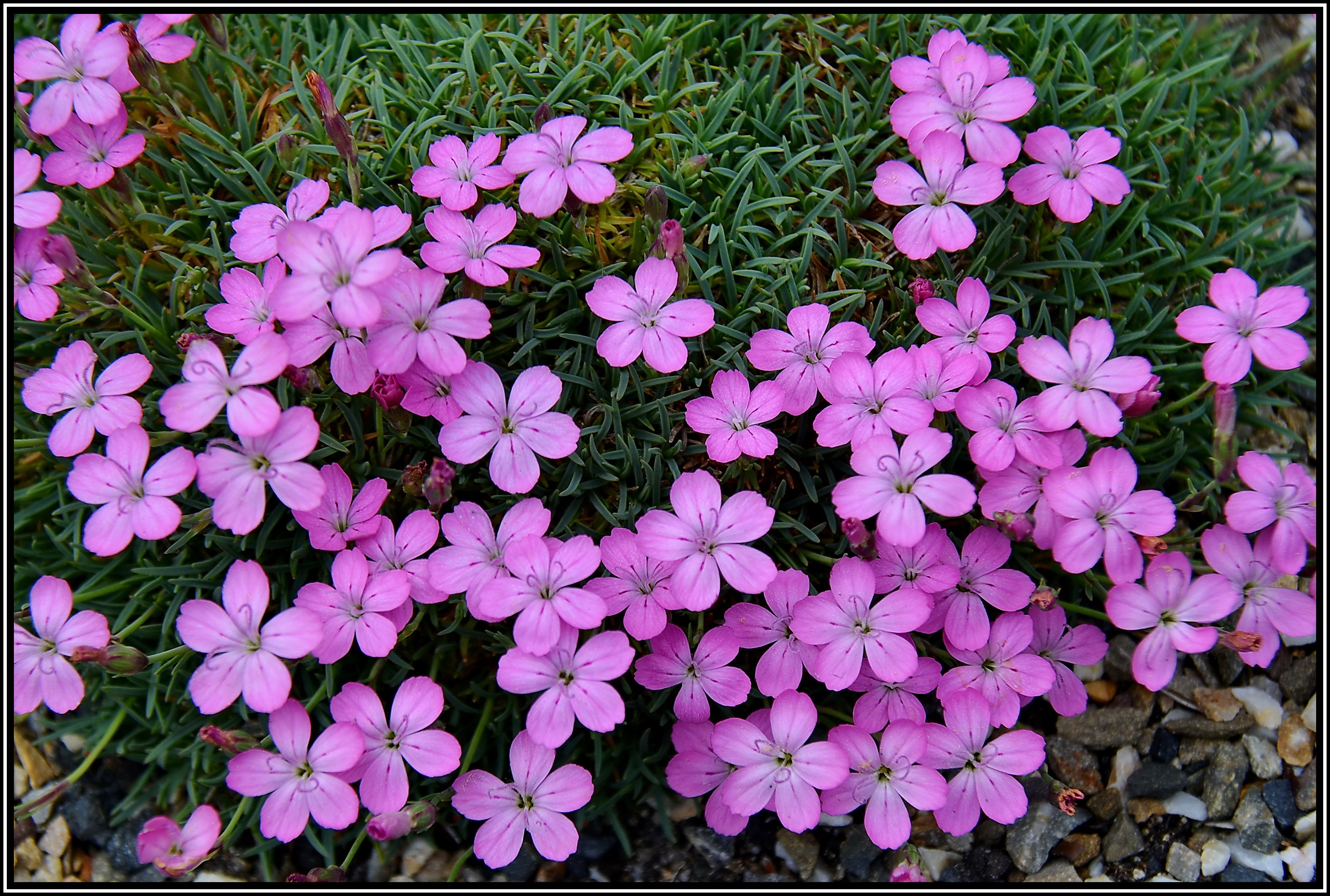 Ich habe sie zwischen dunkle Lavabrocken gepflanzt, was ihr aber nicht so gut bekommt. In diesem Jahr war das Polster stark zurückgefroren und es haben sich nur vereinzelte Blüten gebildet.