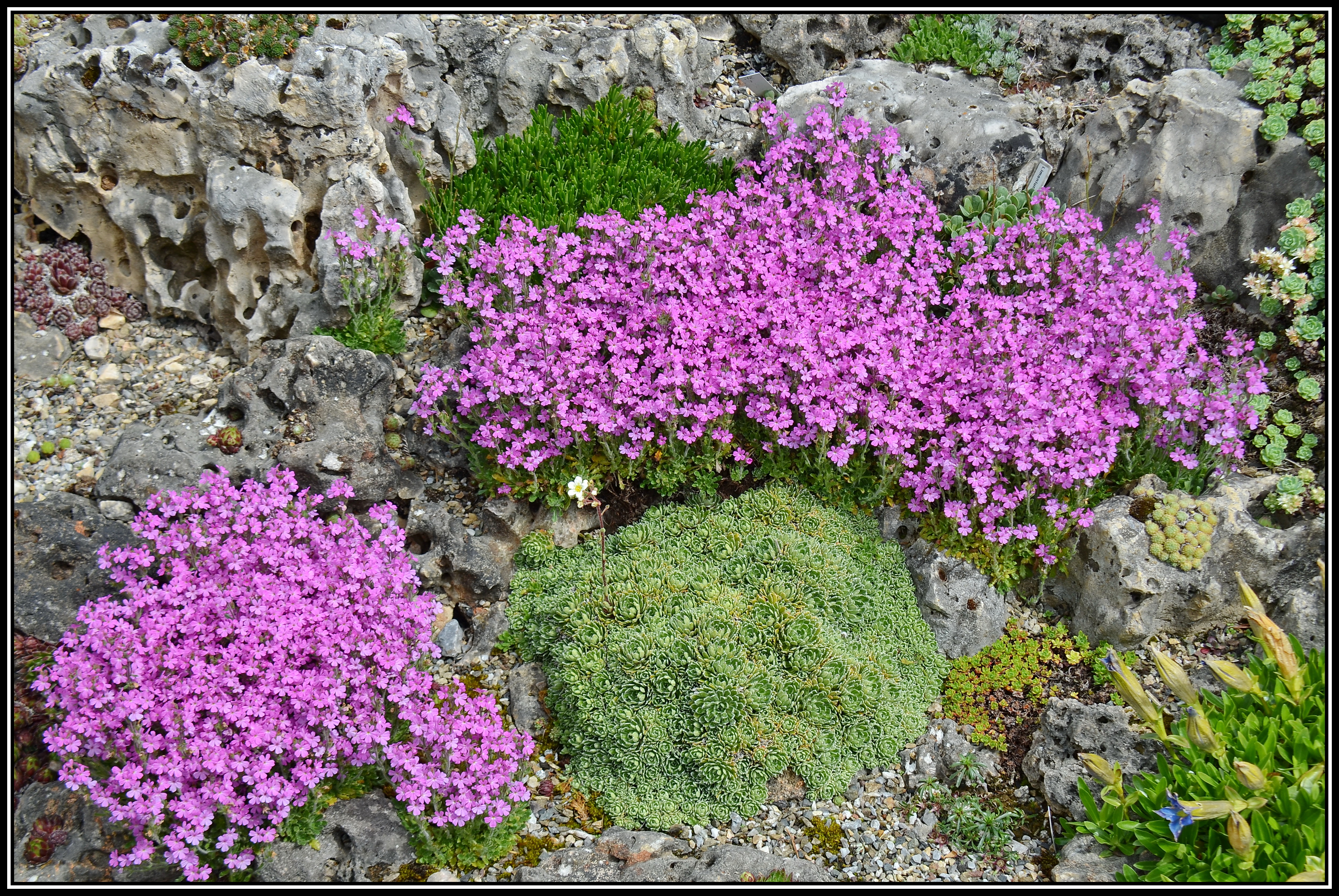 Wenn man nicht aufpasst entwickelt sich Erinus alpinus zu einem herrlich blühenden Unkraut, welches erbarmungslos andere Pflanzen überwuchert und verdrängt.