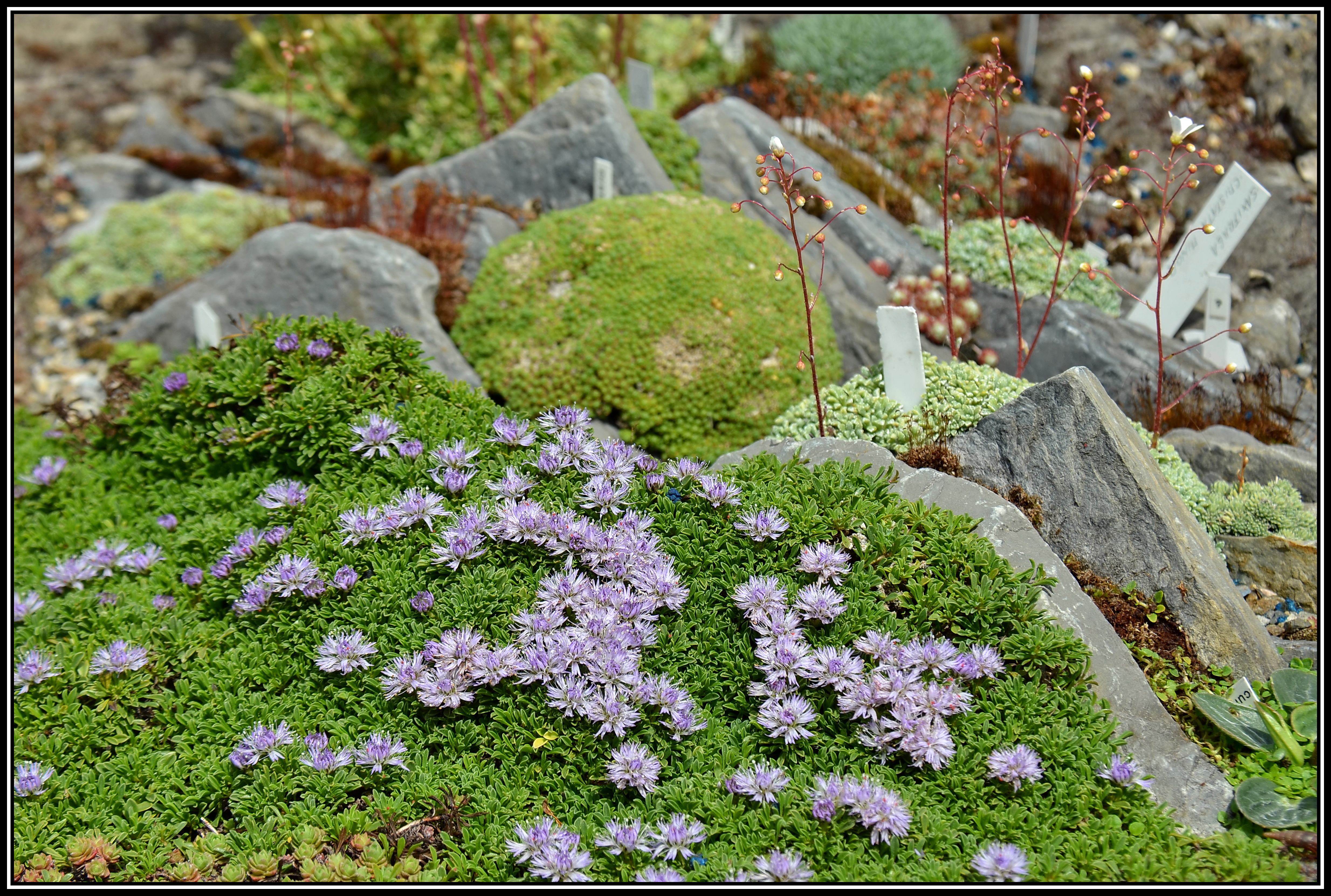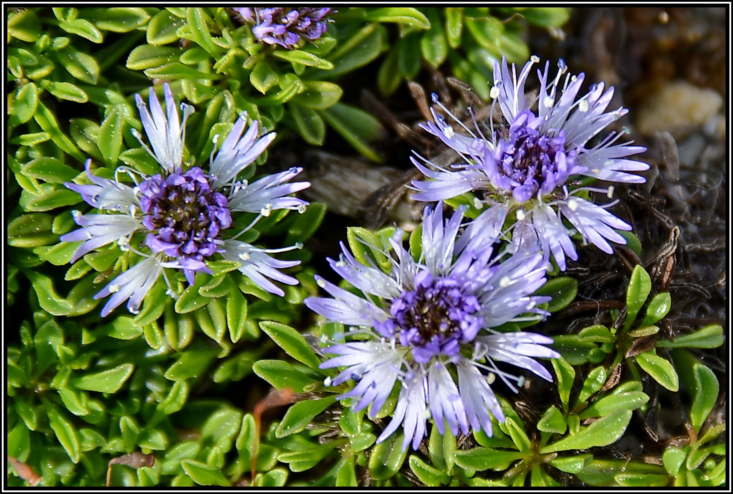 Die Kriechende Kugelblume stammt ursprünglich aus den Pyrenäen. Die lila Blütenkugeln sitzen fast auf den lockeren Polstern auf. Sie braucht einen eher trockenen Pflanzplatz in voller Sonne und auf Kalk. Da sie nicht gänzlich winterhart ist, empfiehlt sich ein Winterschutz bei Barfrost.