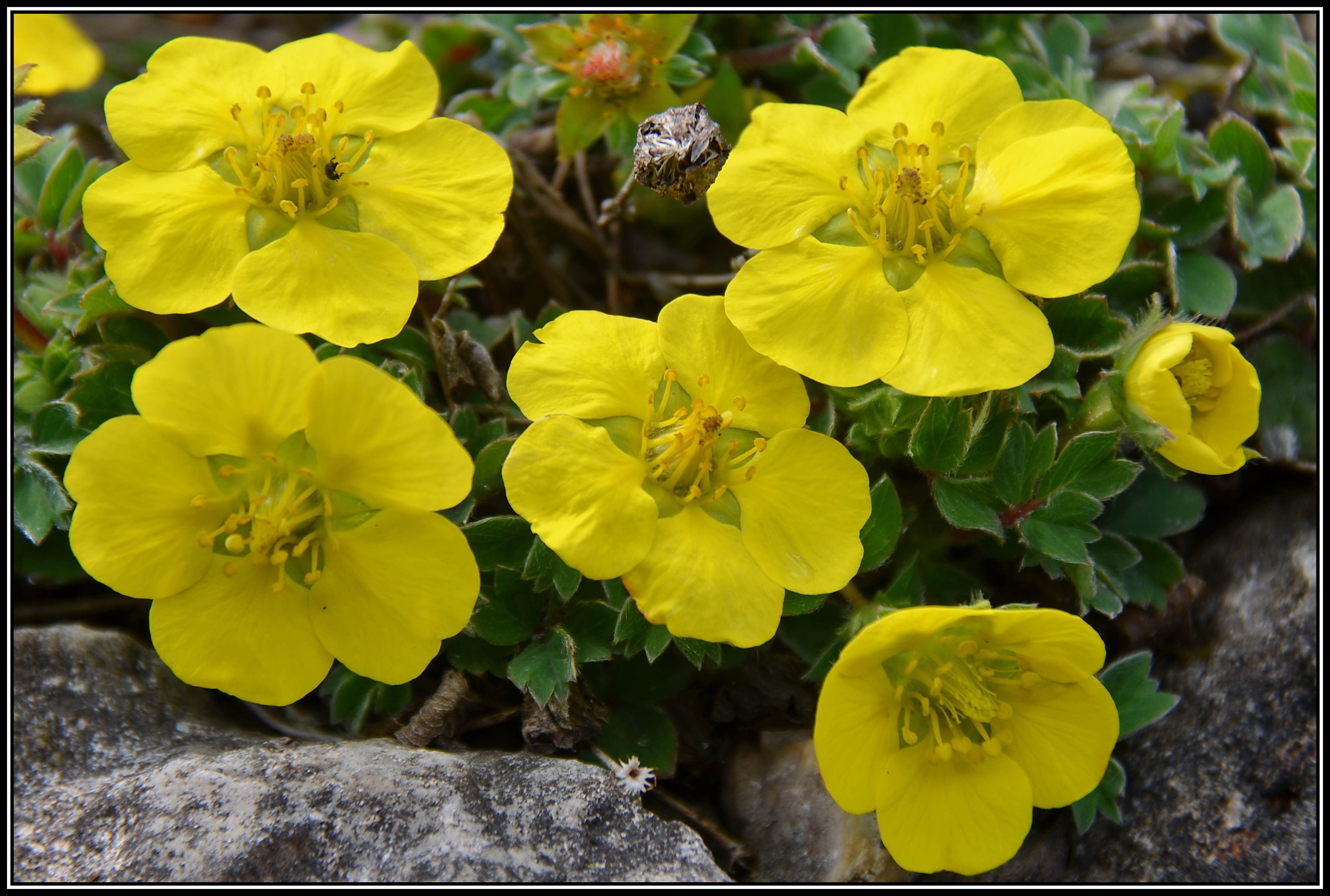 Das Keilblättrige Fingerkraut, auch unter Potentilla cuneata geführt, gehört zur Familie der Rosengewächse, dieses hier kommt aus dem Himalaya. Dieser Halbstrauch bildet ein niedriges lockeres Polster mit aufsitzenden kräftig gelben Blüten, die ab Juni escheinen. Im Kalkschotter und vollsonnig, aber nicht ganz so trocken.
