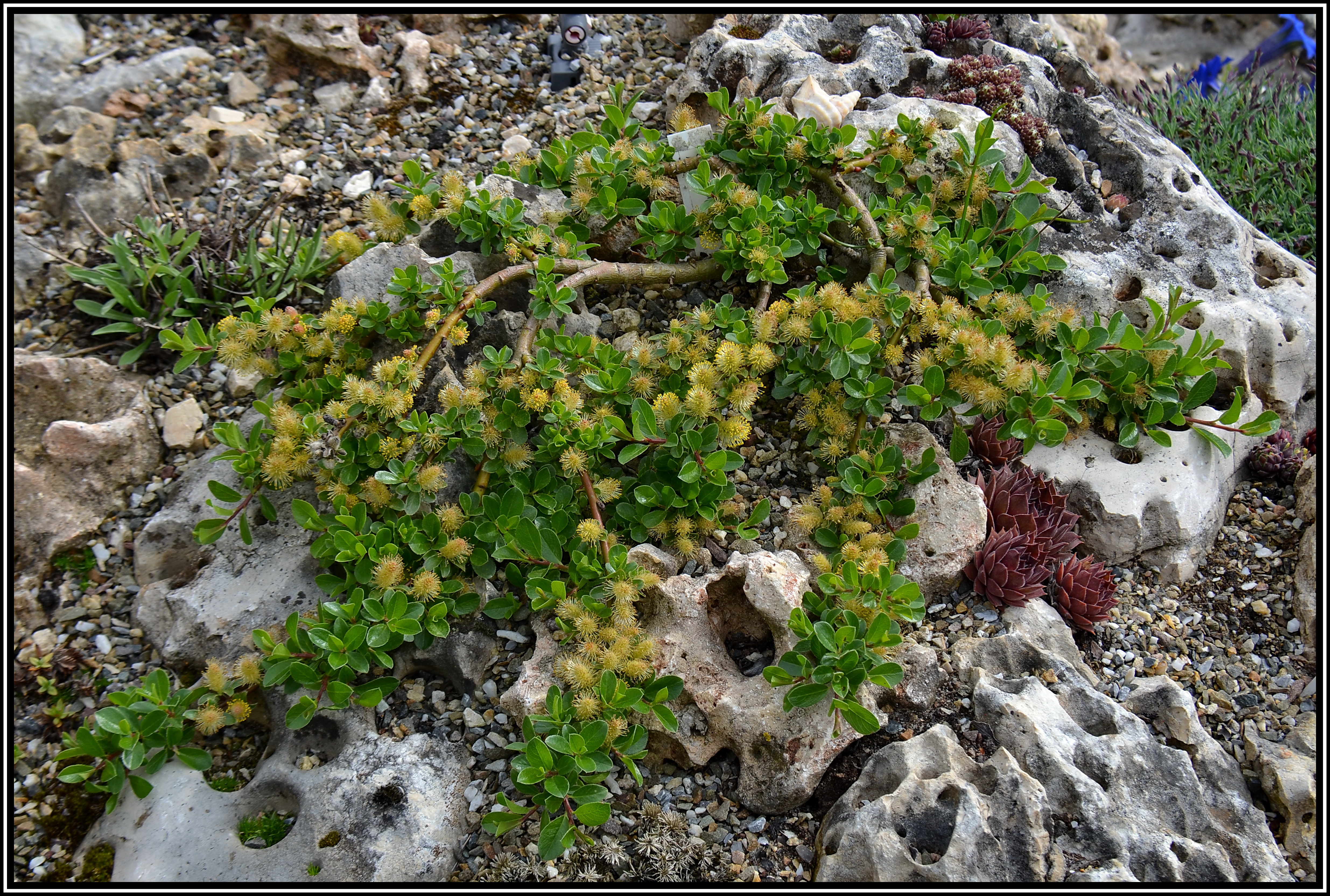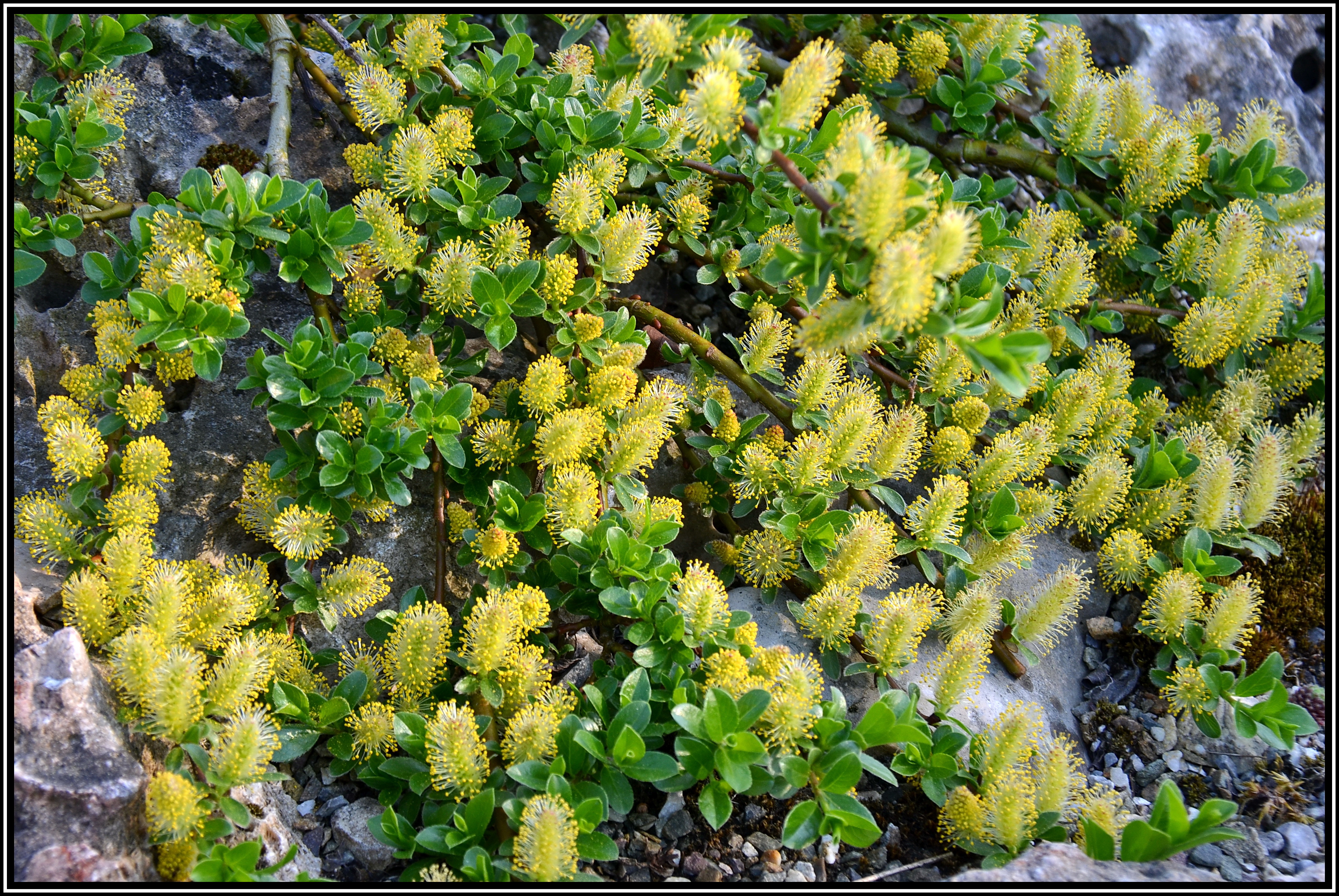 » Home » » Salix retusoides Zwergweide Eine sehr dekorative kleine Weide, die dicht am Boden kriechende Zweige bildet. Sie ist eine Kreuzung von Salix alpina und Salix retusa. Sie blüht schon Anfang April, aber nicht in jedem Jahr so üppig wie auf dem nächsten Foto. » Home » »