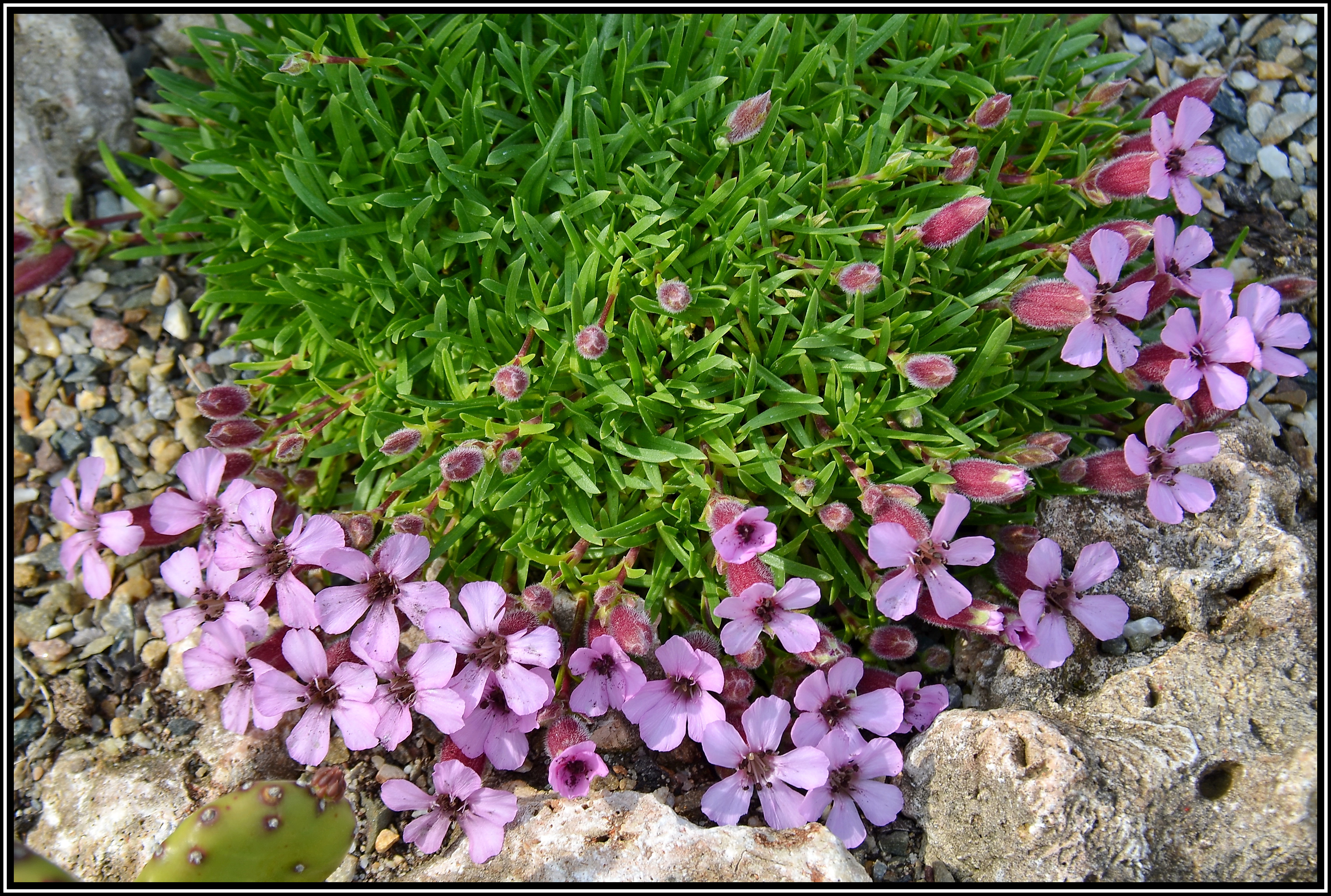 » Home » » Saponaria x olivana Seifenkraut Wächst unproblematisch in Kalkschotter, nicht zu feucht und auf der nach Süden gewandten Seite des Alpinums. Die Blüten sind relativ groß und erscheinen am äußeren Rand des Polsters. » Home » »