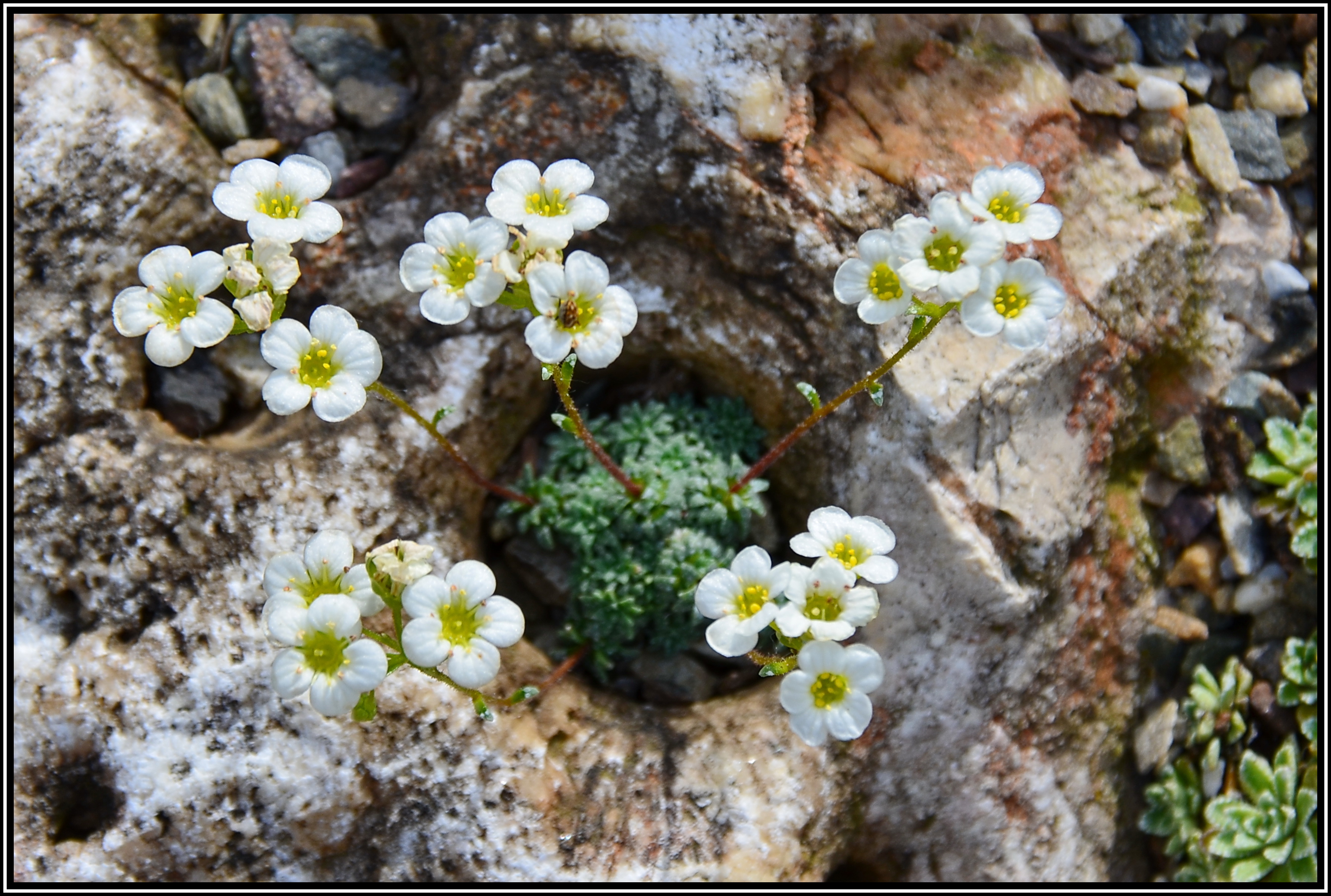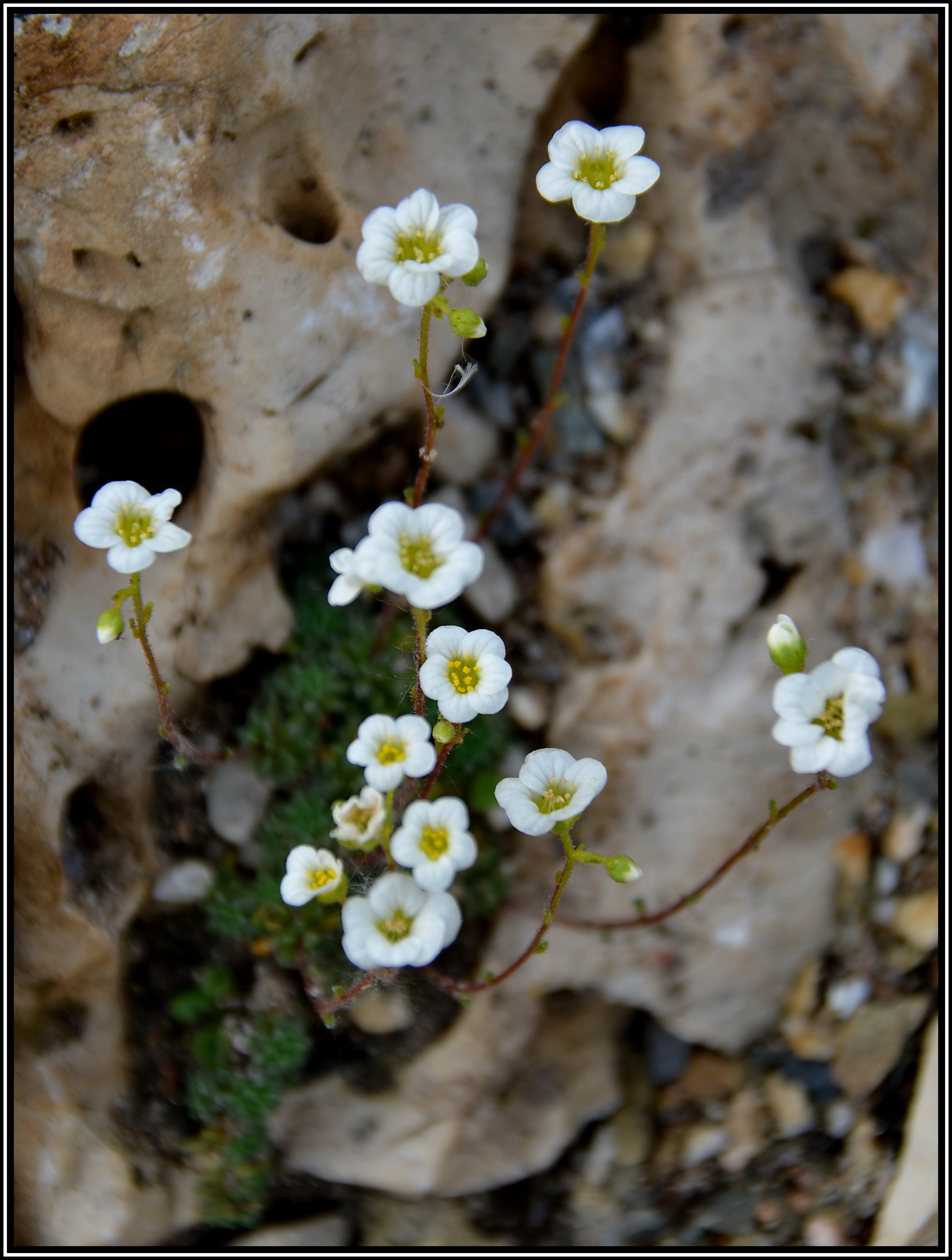 » Home » » Saxifraga caesia Blaugrüner Steinbrech Ist mein kleinster Steinbrech im Garten. Er wächst gut an der Ostseite des Alpinums in einem kleinen Kalktuff-Loch. » Home » »
