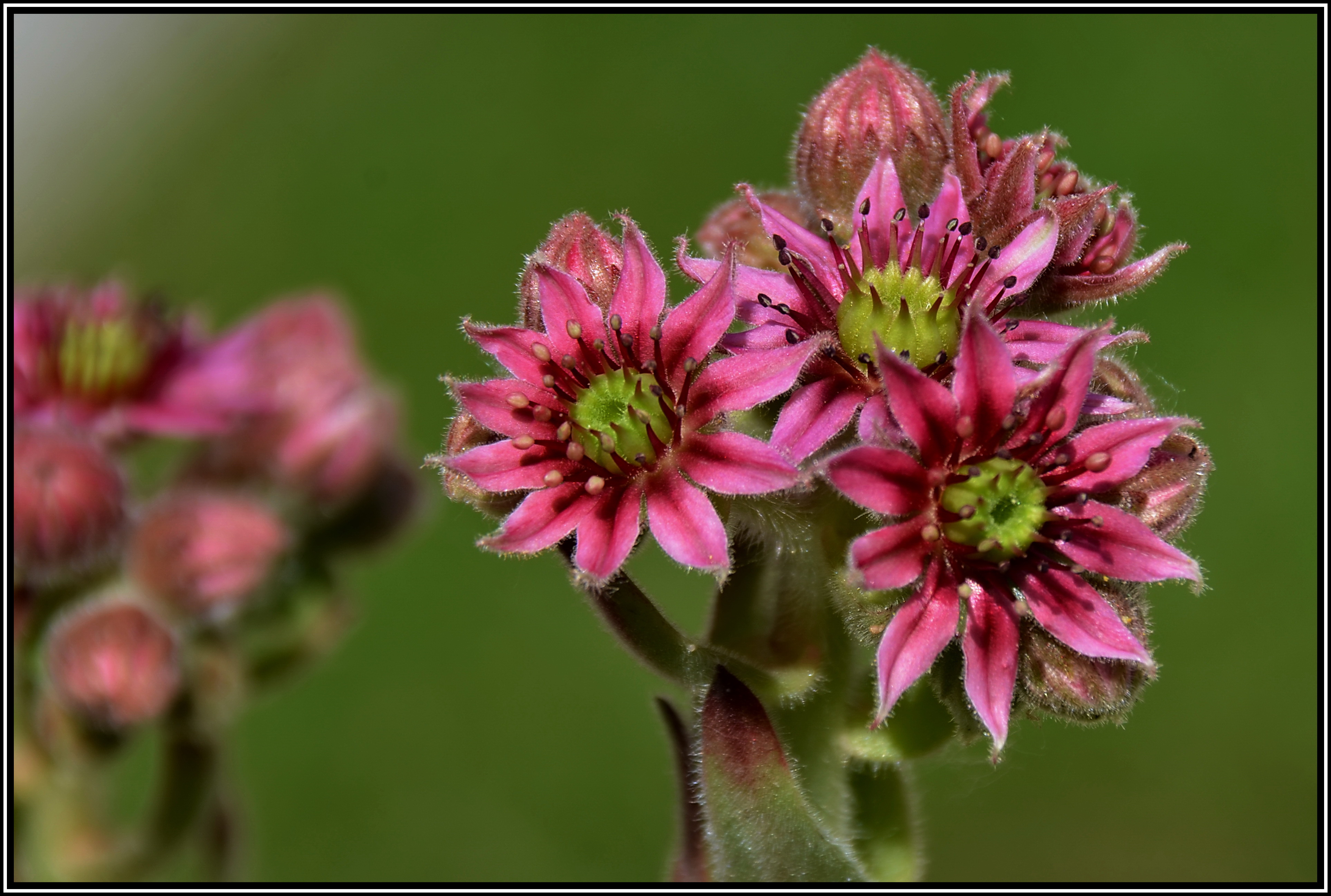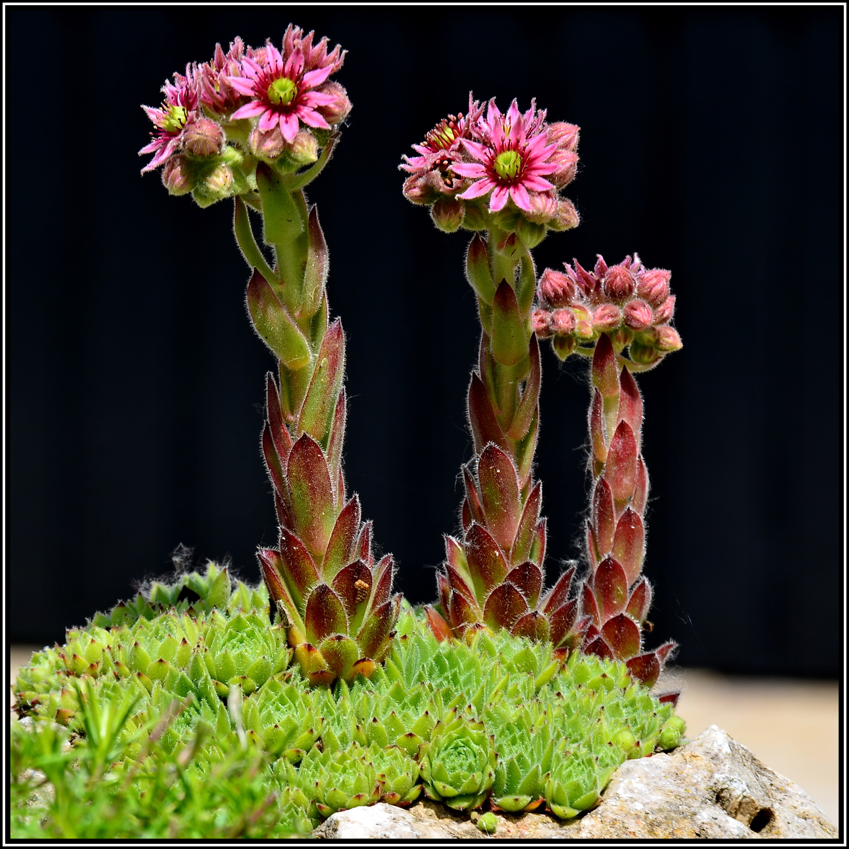 Triple-Hybride aus Sempervivum arachnoideum, S. tektorum und S. montanum.