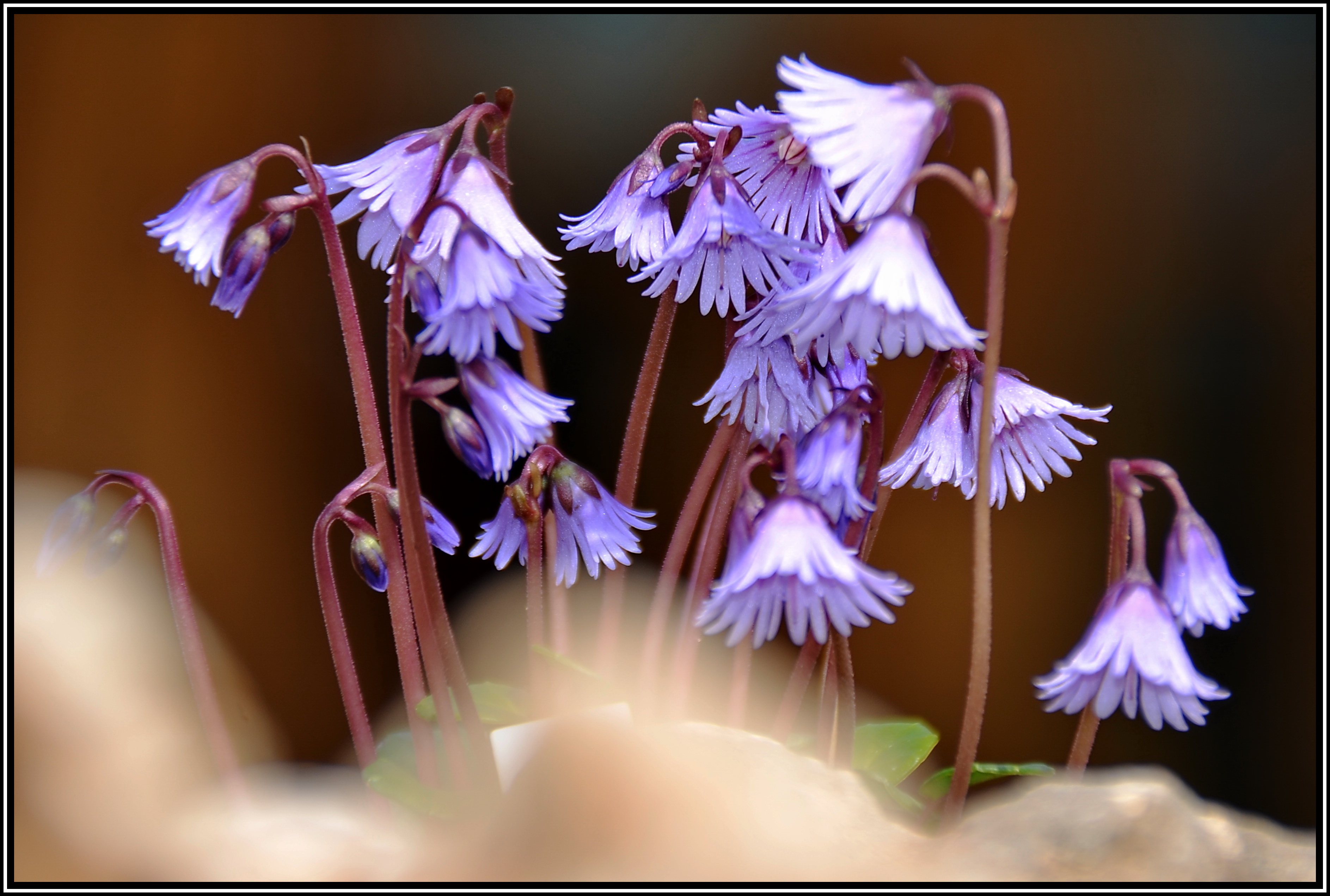 Das Alpenglöckchen wird wegen der ausgefransten Blüte auch Troddelblume genannt. Diese Soldanella aus den Karpaten hat mehrere Blüten an einem Blütenstand.